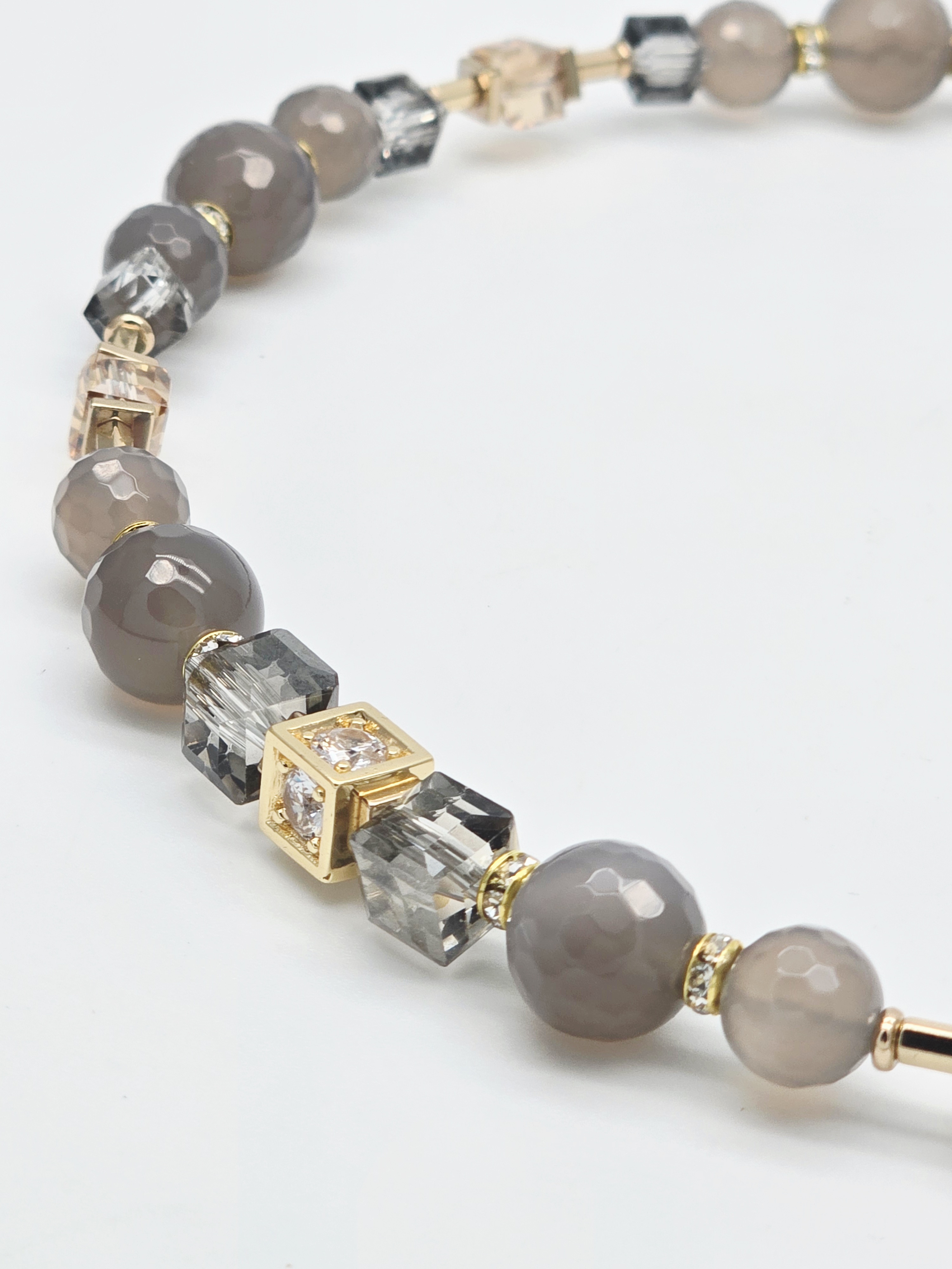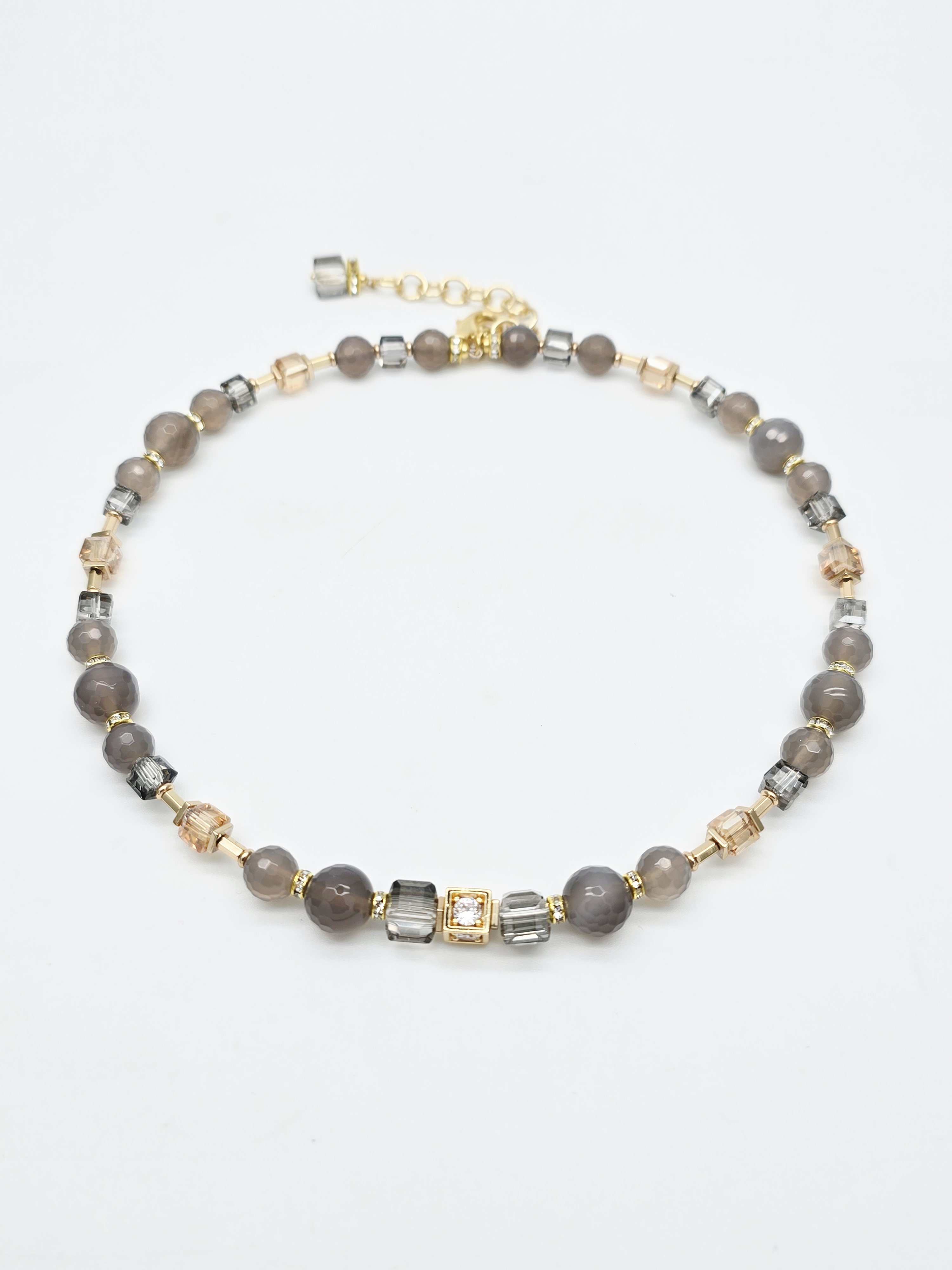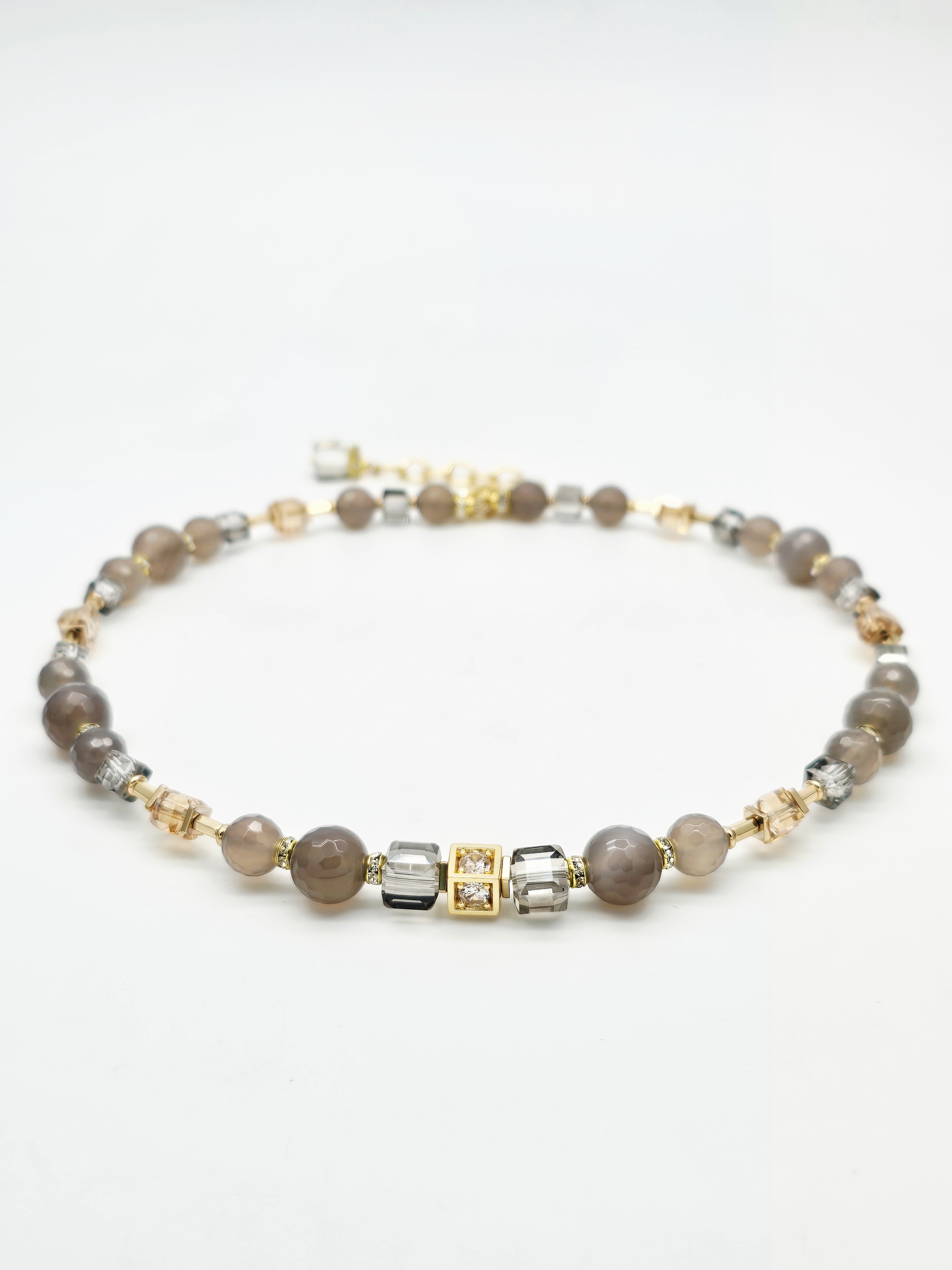 Длина колье 41 - 47 см. Дымчатый кварц 8;10 мм. Хрустальное стекло 6;8 мм.