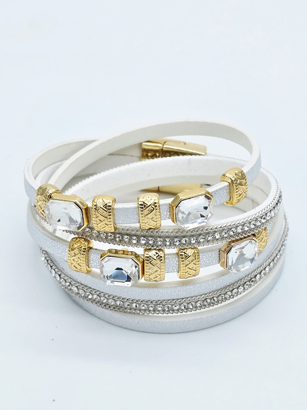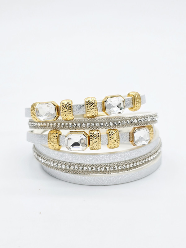 Искусственная кожа, хрустальное стекло, ювелирный сплав. Гальваническое покрытие: золото.